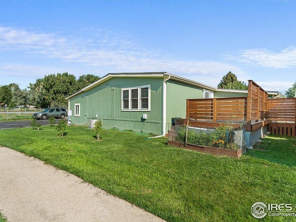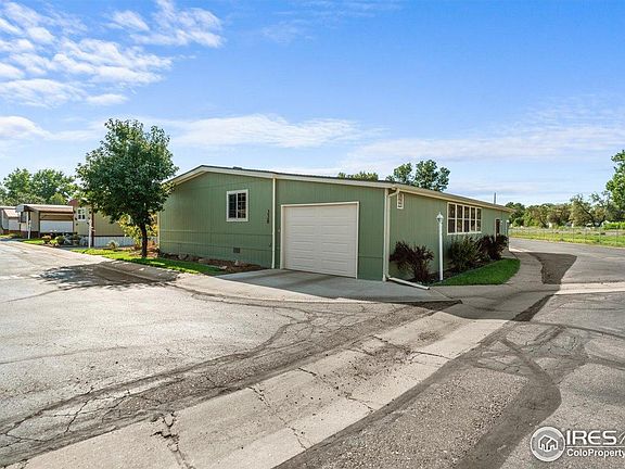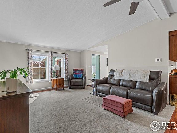 Welcome to this meticulously maintained home in a desirable 55+ gated community just minutes from Old Town Fort Collins. Offering 3 spacious bedrooms each with its own walk-in closet and 2 full baths. This home blends comfort with functionality. The primary suite provides a private retreat with a full bath, while the open kitchen boasts a pantry, island, breakfast bar, gas range, and a new dishwasher-perfect for cooking and entertaining. Enjoy versatile living in the large sunroom or step outside to the expansive hidden seam deck with privacy fencing. Thoughtful upgrades include laminate flooring, recessed lighting, Hunter Douglas window coverings, newer water heater, updated plumbing, newer furnace, and a newer A/C condenser for year-round comfort. The 2-car tandem garage with attached shop (featuring new windows and 12/2 wiring) provides ample space for vehicles, hobbies, and projects. Additional highlights include a vapor barrier under the entire home and up side walls, plus a newer roof with high-impact shingles still under warranty. Outdoors, a productive garden and large corner lot invite relaxation and recreation. The community enhances your lifestyle with a dog-friendly common area and fenced dog park. Lot rent is $1,050/month, covering water and sewer. Cash buyers only. All buyers must apply and be approved by park management. Don't miss this rare opportunity to own a beautifully upgraded home in a vibrant, gated 55+ community close to all the best of Fort Collins!