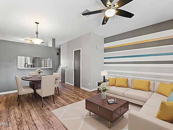 Welcome to this charming 2-bedroom, 1.5-bath townhome in the highly sought-after Sunstone II community of Chandler. The bright and open main level features tile flooring, a spacious living room, dedicated dining area, and a well-equipped kitchen with plentiful cabinets and a convenient breakfast bar. Upstairs, you'll find two large bedrooms with great closet space and a full bath featuring tasteful updates. Step outside to your private, enclosed patio—perfect for relaxing or entertaining. Additional highlights include in-unit laundry, covered parking, and access to community amenities like a sparkling pool, lush greenbelts, and mature landscaping. Located just minutes from vibrant downtown Chandler, with easy access to top-rated schools, local parks, dining, shopping, and major freeways. This home offers the ideal balance of comfort, low-maintenance living, and a prime locationperfect for first-time buyers, investors, or anyone looking to enjoy all that Chandler has to offer.