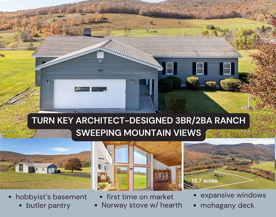 Impeccably maintained and thoughtfully designed, this architect-crafted 1985 ranch sits privately on 10.75 wooded acres, set back from a town-maintained road for an estate-like sense of seclusion. Turn-key and built with quality throughout, the home offers 1,680 sq. ft. on the main level plus an additional 1,680 sq. ft. of fully finished walkout basement—providing generous space for comfortable living, entertaining, and hobbies in the heart of the Catskills.