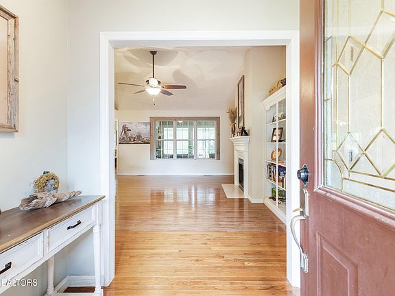 Privacy in the City limits of Maryville - A rated school district! This beautifully maintained 3-bedroom, 2-bath residence offers 2,257 sq. ft. of comfortable, single-level living. Ideally located just 5 minutes from Blount Memorial Hospital and downtown Maryville, 20 minutes to the Great Smoky Mountains National Park, and 25 minutes to downtown Knoxville, the home combines convenience with a peaceful, nature-filled setting. Professional landscaping with edible and medicinal herbs and plants, organic soil, and permaculture inspired yard design, this is a haven for wildlife, including fireflies in the summer (because of no poisons sprayed here in over 17 years). The home backs up to 140 acres, with a forest directly behind the home; great for bird watching, very quiet and peaceful. Inside, you'll find gleaming oak hardwood floors, built-in bookshelves, and a cozy gas-burning fireplace. A spacious climate controlled sunroom spans the back of the home, providing the perfect spot to enjoy year-round views of the lush backyard. Outdoors, the landscaped yard boasts a crabapple tree, small fig trees, blueberry bushes, elderberries, rosemary, yarrow, lambs ear, lilies, bearded irises, and a garden space, all backing up to a serene wooded area where deer, turkey, and other wildlife are frequent visitors. Whether you're relaxing indoors or exploring the outdoors very close by, this property offers the best of both worlds—city convenience and privacy surrounded by nature.