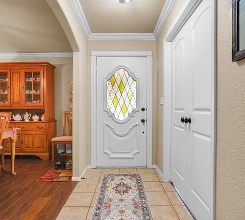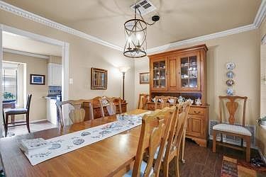 This residence offers a welcoming environment in a well-established neighborhood. The front porch features a covered patio and an extended wooden deck with a pergola. Upon entering, you are greeted by a tiled entryway that leads to a private office, which boasts LVP flooring and a large front window that fills the space with natural light. The living room is generously sized, complete with a cozy fireplace and built-in cabinets. The kitchen includes a designated area for a dining table, new quartz sink and faucets, ample cabinetry and counter space, along with stainless steel appliances. There is also a formal dining area conveniently located near the front entry. The primary bedroom is impressively spacious, featuring an ensuite bathroom with updated fixtures, a shower/tub combination, and a large walk-in closet. Additionally, there are three guest bedrooms and a guest bathroom equipped with modern sink faucets. Adjacent to the living room, a sunroom provides access to the expansive backyard, which is perfect for entertaining and includes a cozy fire pit area, a storm shelter, and an updated privacy wood fence.