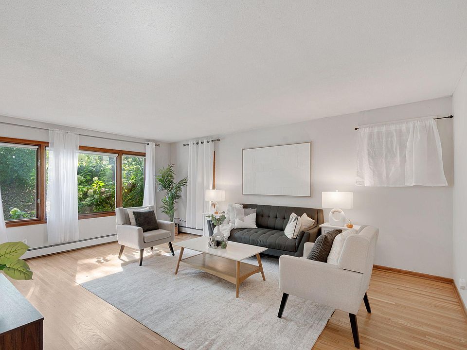 Sunny River Hills rambler with updates throughout. Welcoming living room that flows into kitchen and formal dining room that could be used as a family room with its cozy wood burning fireplace. Sliding glass door opens out onto large backyard patio expanding your entertaining space. Original hardwood floors throughout main floor except for the kitchen which boasts newer flooring, stainless steel and modern painted cabinetry. Primary bedroom has its own private 3/4 bath with updated flooring and vanity. Double closets and two windows make it both functional and inviting. Two more bedrooms and full updated bathroom complete the main floor. Huge lower level multi-purpose family room/amusement room. There is additional finished space that could be an office, workout room, craft room, the possibilities are endless! Also, lower level unfinished storage and laundry room. Relax on your patio in your fully fenced private backyard. Convenient to schools, parks, shopping, downtown highway access and the Burnsville Transit Station.