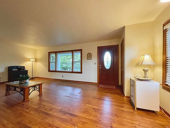 From the street, 1601 Reiter Drive welcomes you with classic mid-century charm. A covered front porch with crisp white columns and a cheerful blue door set the tone: warm, inviting, and full of character. Mature landscaping softens the entry, while the broad front yard hints at the property’s generous scale. Step inside, and you’re greeted by a large front living room awash in natural light from the bay window. Laminate floors, clean lines, and an open layout make this an easy space for both everyday living and entertaining. There’s a sense of calm here, a simplicity that feels timeless. From the living room, the home flows naturally into the kitchen and dining area. Updated stainless steel appliances, abundant oak cabinetry, and plenty of counter space make meal prep a pleasure. A dining nook beside sliding doors overlooks the fenced in yard, and unique pendant lighting adds a touch of vintage flair. It’s an everyday hub with authentic charm. Continue down the hall and you’ll find a full bath with thoughtful updates that don’t ruin the original style, plus two comfortable bedrooms with hardwood floors. The story doesn’t end here, however. Head downstairs to discover a full basement with retro personality. Checkerboard floors, a half bath by the laundry area, and vintage built-in cabinetry make this level both practical and fun. A wide bay window looks out on the lush backyard, bringing daylight into the space, and reminding you of the natural beauty just beyond the walls. There’s room here for hobbies, play, storage, or simply stretching out. Step outside, and your own private nature center comes to life. This property spans over 0.8 acres and is officially certified by the National Wildlife Federation as a wildlife habitat. A grove of trees lines a small creek bed, perennial plantings provide food, water, and shelter for pollinators and songbirds alike. The fenced-in section is perfect for pets, while the larger grounds and detached garage with west facing porch invite exploration, gardening, shop space, or quiet reflection. As the sun sets over the wooded western edge, the property glows with golden light, a daily reminder of the peace and beauty this home offers. This is more than a home; it’s a retreat. A place where mid-century charm meets natural wonder, just waiting for its next chapter.