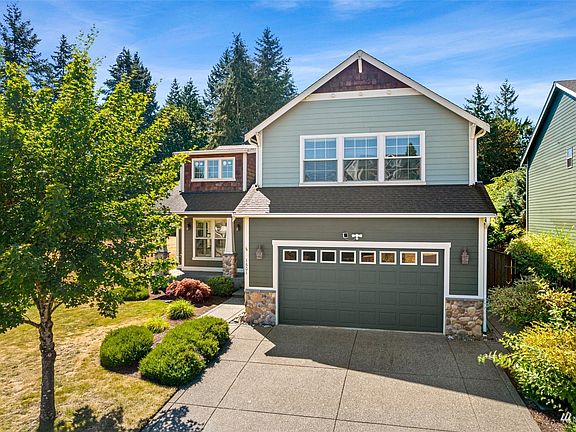 This beautiful hilltop home boasts new interior paint, new carpet, vaulted ceilings and a gorgeous kitchen! Stainless steel appliances, granite tile counter tops, cherry wood cabinets and hardwood floors complete the kitchen. The primary bedroom has a 5 piece bath, two huge walk in closets and a balcony to enjoy the lovely mountain view. Make sure to check out the extra deep garage that would make a great shop or extra storage. The charming yard has mature landscaping, a water feature and is adjacent to the Tumwater Hill Park walking trails. All of this in a desirable neighborhood that is within walking distance to Tumwater Elementary School. A MUST see!!