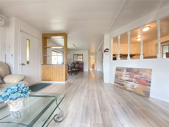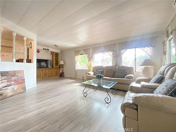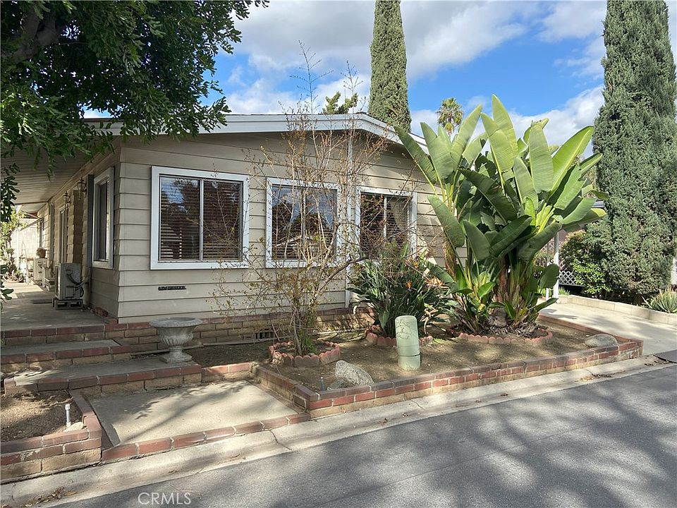 Discover this delightful, gated community designed for all ages! This impeccably maintained park offers residents an array of amenities, including a swimming pool, spa, clubhouse, recreation facilities, tennis court, basketball court, and more. Conveniently located near freeways, shopping centers, and the Pomona DMV, this property features 2 bedrooms and 2 baths with an inviting open floor plan. One bathroom has been recently remodeled, new vinyl flooring was installed in 2022 and fresh outside paint. The house includes a charming backyard with several fruit trees, including orange and lemon trees. Don't miss out on this must-see home! Come and take a look!