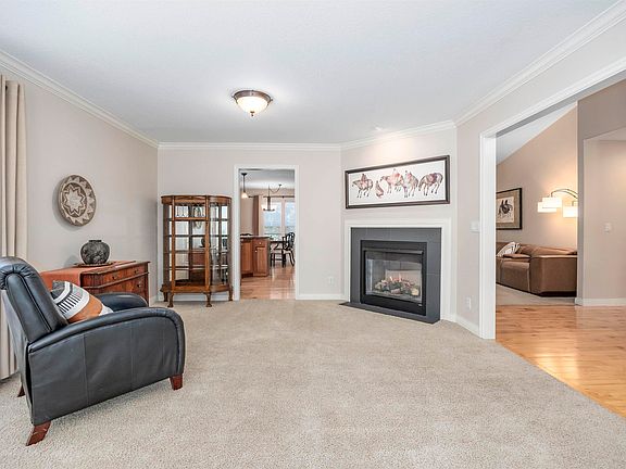 Double-sided fireplaceLarge windowsPrimary suiteCrown moldingPrivate bathSoaking tubSeparate shower