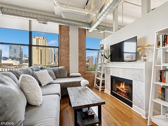 Stunning 1-bedroom / 1-bathroom condo in the South Loop with phenomenal city views to the well-thought-out contemporary upgrades in this spacious, open concrete-ceiling Loft. Open floorplan is perfect for entertaining, and the living/dining space can accommodate any seating arrangement, as well as full-sized dining table. Gorgeous hardwood floors throughout, huge windows, double-sided gas fireplace and massive balcony. Kitchen upgrades include beautiful cabinets, stainless steel appliances, granite countertops and kitchen bar. Spa-like bathroom with marble countertop and gorgeous custom tiles. Oversized bedroom can fit all of your furniture, with an extremely large walk-in closet. Front-loading W/D in-unit. Balcony has incredible panoramic city views, large enough for outdoor furniture, chairs and grill. Huge storage locker in basement included in price. Private deeded garage parking garage (large enough for car and motorcycle) available for $30,000. Building has guest parking as well. A+ location near lakefront trail, dog park, Museum Campus, Grant Park, restaurants, Marianos, and convenient access to public transit and expressways.