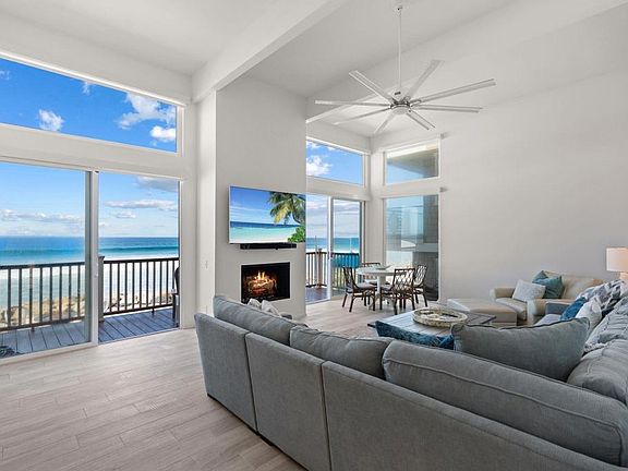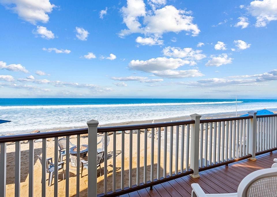 Oceanfront Townhome with Unrivaled White Water Views! Perfectly positioned in a quaint 13-unit oceanfront community, this 3 bed, 2.5 bath townhome offers panoramic, uninterrupted white water views and the rare luxury of the complex’s private sandy beach with firepit—just steps from your door. With 1,860 square feet, this end-unit feels like a standalone home, with no one above or below and direct access into a private two car garage. The home was thoughtfully remodeled in 2020 with a clean, coastal aesthetic—featuring ceramic plank flooring, refreshed bathrooms, updated kitchen with new appliances, gas cooking, all-new windows, and fully redone plumbing. Enjoy ocean views from nearly every angle—whether you’re gathered around the fireplace in the soaring living room, entertaining from the elevated kitchen and dining area, or relaxing on your private oceanfront deck. The primary suite offers space and privacy, while two additional ocean-view bedrooms make hosting a breeze. The home is offered fully furnished and turnkey—ready for you to move in and enjoy the beach life from day one. Located in a highly walkable pocket of Oceanside, you’re just steps to Buccaneer Café and minutes to downtown’s newest restaurants, trendy coffee shops, and the iconic Oceanside pier. Whether you're looking for a refined second home or the perfect year-round beach escape, this is a rare opportunity to own oceanfront in one of North County’s most coveted locations.
