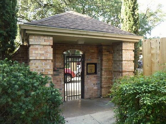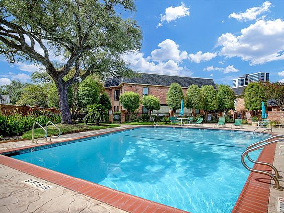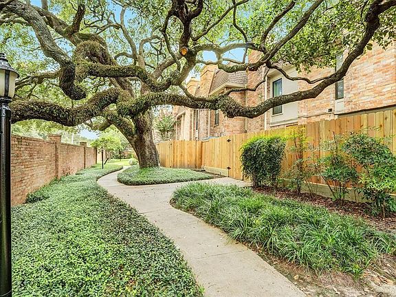 Ground floor unit located within the gated community of River Oaks Gardens surrounded by lush grounds and old oak trees. Just steps away from the River Oaks Shopping center. This unit has beautiful hardwood floors throughout with tile in kitchen and bath. Walk in shower. Full size washer and dryer. Private spacious fenced patio with large storage closet. Valet trash pickup outside your door 3 days a week. 24/7 courtesy officers. Covered reserved parking. Beautiful community pool. Easy access to Buffalo Bayou Hike & Bike trail. A must see in a great location!!