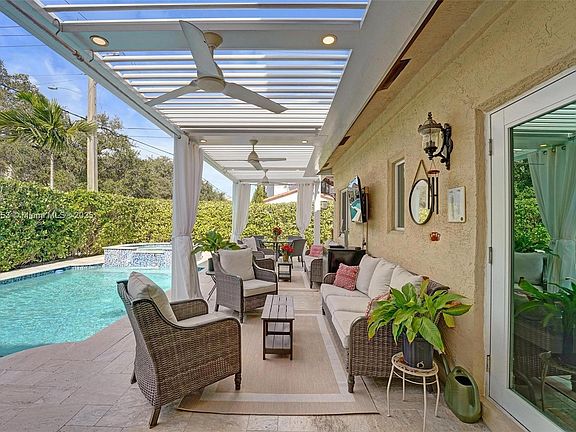 Remodeled corner lot 4/3 three blocks off Las Olas in Colee Hammock.Newer roof.Impact windows & doors.2 side loaded CG & expanded driveway.Custom gourmet kitchen w/50+ cabinets.Dining room w/large buffet/coffee station & wine cooler.Amazing resort style pool/patio/yard area w/hurricane grade Pergola.Roof opens & closes for comfort year around.Cost efficient gas heated pool w/newer pool finish&deck.Downstairs master suite w/remodeled bath w/soaking tub,zero step in shower,double vanity.Split plan w/addt'l bedroom down & remodeled bath w/walk in shower.Upstairs w/2 bedrooms (one w/pocket doors to hallway for use as loft) each w/walk in closet & remodeled bath.Other:Dbl door entry;Bahama shutters & silhouette blinds;newer AC motor & compressor;termite treatment;newer pool pump & washer/dryer