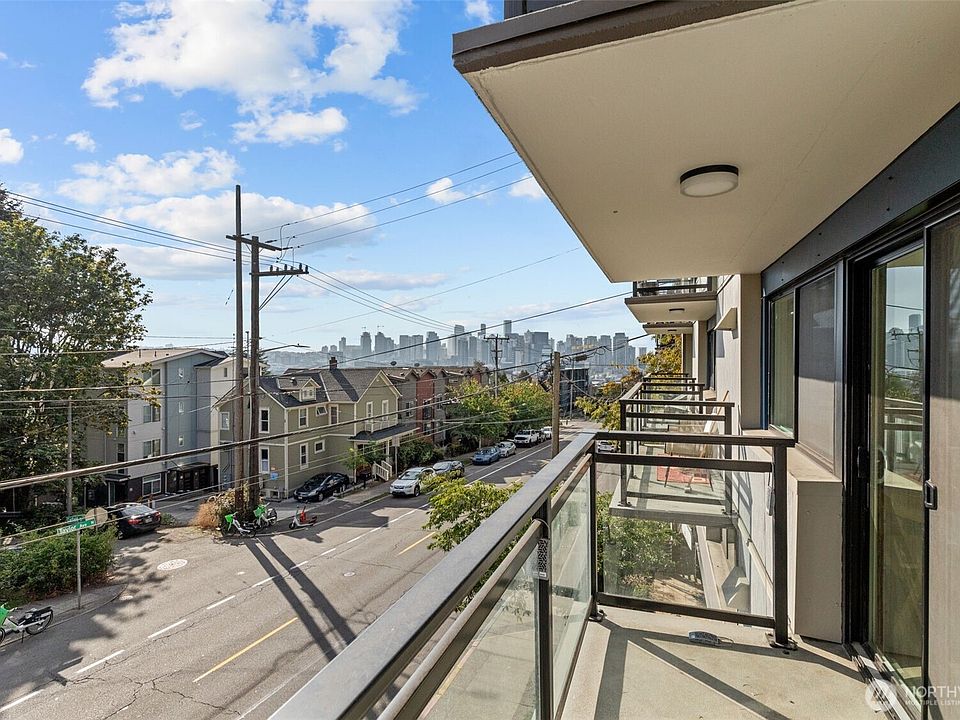 Welcome to this stylish 2 bedroom in Queen Anne. Enjoy easy living with brand new floors, fresh paint throughout, new light fixtures, and views of downtown from your private patio. The open layout is perfect for entertaining, and you'll love the convenience of in unit w/d, plus your own assigned parking spot. No rental and pets allowed, this condo offers flexibility for homeowners and investors. Just steps up the hill from shops and restaurants, parks, and plenty of Queen Anne stairs, this is urban living at it's best! Well run HOA with no special assessment!