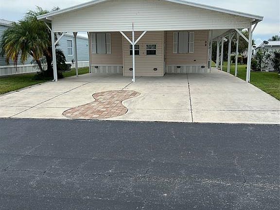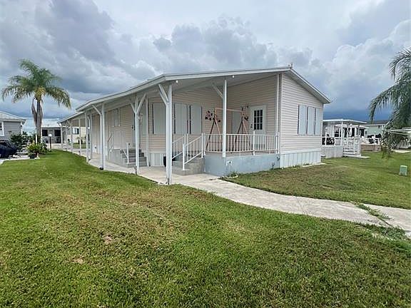 Welcome to Oasis Village- A 55+ Community. This beautifully maintained 2 Bedroom 2 Bath, furnished home is comfort ready! Spacious master suite with walk-in closet. Large outside utility room for extra storage. Double carport for plenty of parking. Relax and enjoy the water with your own dock. Perfect for year-round living or a seasonal retreat, this home has everything you need to enjoy the Florida lifestyle. Community amenities include a Beautiful clubhouse heated pool for year-round relaxation. Pickleball courts and billiards for active living. Covered mailboxes for added convenience. Located minutes from public boat ramps, close to shopping, and only 30 minutes from Brighton Bay Casino, you'll enjoy the best of both relaxation and recreation.