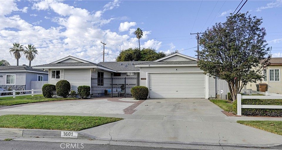 Welcome to this charming Mid-Century single-story home on a beautiful interior street in a pride-of-ownership Fullerton neighborhood. Curb appeal shines with a curved driveway that fits six cars, mature landscaping, and a private, gated brick porch perfect for relaxing outdoors. Inside, the bright living room features original hardwood floors, a cozy brick fireplace, and timeless character. Offering over 2,200 sq. ft. of living space on a 6,900+ sq. ft. lot, this home blends space and comfort. The open layout flows from the living and dining areas to a spacious step-down family room with vaulted wood-beamed ceilings, built-in bar and BBQ, and sliding doors to the backyard. The vintage kitchen, with preserved tile counters and double ovens, has direct garage access. Down the hall are four comfortable bedrooms and two bathrooms. The two-car garage includes storage, a utility sink, washer/dryer hookups, and water softener. Additional highlights include central heat, brand-new A/C, attic fan, in-home safe, built-in hampers, heaters in both bathrooms, outdoor flood lights, and freshly painted interior. Ideally located near schools, parks, freeways, and downtown Fullerton’s dining and shopping, this home offers space, function, and convenience—all under $1 million.