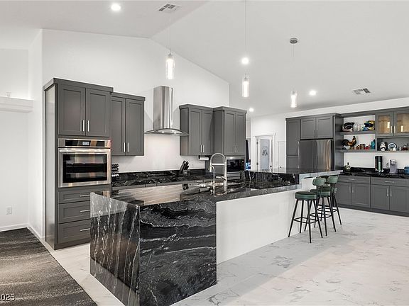 **Up to $10k in buyer incentives!!** Fall in love with this gorgeous custom home!! This beautiful abode sits on 1.14 acres in the heart of Calvada Valley and is surrounded by mountain views and other custom homes. The impressive open living/entertaining area, with its vaulted ceilings and backlit electric fireplace with multi-color settings, will WOW both you and your guests! The gourmet kitchen showcases a beautiful oversized island with waterfall edges, custom cabinetry with pullouts, a glass cooktop, and upgraded stainless steel appliances, including a built-in oven and microwave! Beautiful granite counters throughout, including the spacious laundry room! Walk-in pantry (also houses the closed-circuit alarm/camera system). Huge 4 car garage: 1351 sq ft with a 240a! Private well with water softener ( it's even connected to an exterior hose bib for soft water car washing!), tankless water heater, and an RO system. Covered rear patio with ceiling fan! Seeing it in person is a MUST!
