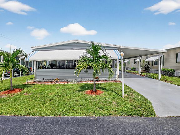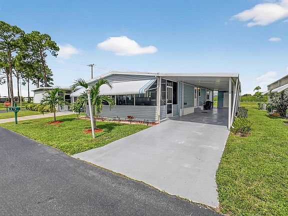 NO LAND LEASE OR LOT RENT!! Open concept 2 bedroom/2 bath home with a FANTASTIC location in the desirable Jamaica Bay! This unit is situated in the best lot in the park with the lake located behind the unit, you have added privacy and a larger lot! Kitchen has granite countertops, new luxury vinyl plank flooring, updated bathrooms, new windows in the living areas! A/C is 2022! Hot water tank 2023, all new tie downs, vapor barrier added! Large walk in closet in primary bedroom and walk out screened patio with cathedral ceilings! The LOW monthly HOA fee of $250 covers internet, lawn care, water, sewer, trash removal, 24/7 manned gate, on-site management, and amenities include multiple heated pools, library, clubhouse, billiards, bocce ball, putting green, dog park and social events