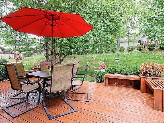 Spit-spot perfect two-story on triple cul-de-sac in Clarkson Woods. Awesome professionally landscaped third-acre yard & expansive deck (21x16). Open kitchen & breakfast room has stainless appliances: Jenn Air smooth cooktop, double oven, can lighting, wine rack, double sink, plenty of counters & cabinets, pantry and ceramic tile flooring. Large family room w/stone fireplace, wet bar & wood flooring w/two French doors to deck. Separate formal dining room & living room w/bay window. Main floor laundry room w/backdoor. Updated main floor powder bath and second floor full bath w/shower/tub combo. Master bedroom suite w/large sitting room, private full bath & deep walk-in closet. Formal ceramic tile entry foyer. Well-maintained. New tilt-in windows. Electric Panel '17, Roof '12, Furnace '16, A/C '08 Subdivision fishing pond and family activities. Top-rated Rockwood Schools: Kehrs Mill, Crestview, Marquette. Showings start 4/20.