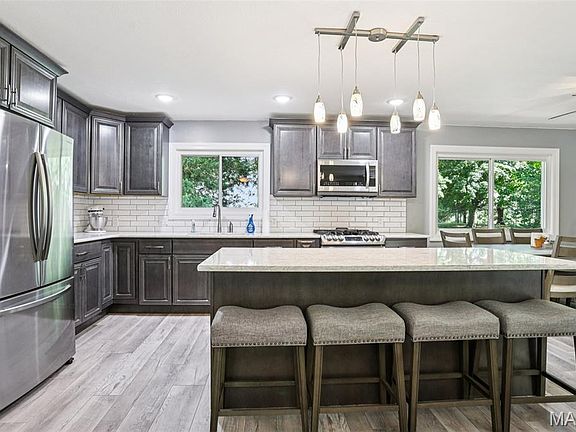 Above-ground poolModern cabinetryExpansive multi-level deckingRecently remodeled kitchenPremium appliancesUpdated countertopsScenic backyard