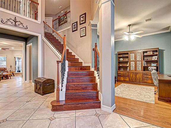 Fabulous Coles Crossing home located on a cul-de-sac and featuring everything you need to enjoy working, playing, relaxing and entertaining! Boasting 5 gracious sized bedrooms each with walk-in closets, 3.5 baths, a custom-built media room for endless hours of entertainment, a fabulous oversized covered patio with a spectacular outdoor kitchen, an air-conditioned garage workshop, and a beautifully updated kitchen that is sure to be the heart of this home. Guests are greeted by the grand foyer upon entry, fresh paint throughout, hardwood floors on the first floor that give a welcoming warmth to all who enter, and lovely stone accents throughout the living area. No detail has gone unnoticed with this lovely renovation. Additional highlights of this home include lots of extra built-in storage, an outdoor Hardiboard shed, a fire pit, and ample room in the backyard to add a swimming pool. Zoned to top-rated CFISD schools, miles of trails, and wonderful neighborhood amenities.