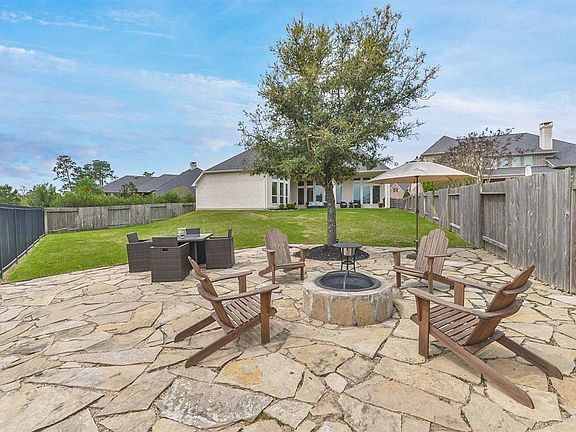 Visit this phenomenal home in Lakeshore! Not only is this the BIGGEST one-story home in Lakeshore, this home also features a spacious cul de sac lot with greenbelt behind (iron fencing so the view is not obstructed) and a large extended stone patio with a fire pit area IN ADDITION to a large covered patio area complete with fans! This home also offers a three-car garage, open-concept floorplan, surround-sound speaker system, high ceilings, 8' doors, large windows for a bright interior, fabulous tile flooring, wonderful architectural details and beautiful chandelier lighting...the gourmet kitchen features stainless appliances, double oven, gas cooktop, granite countertops, custom stone backsplash areas, LOTS of lovely cabinets including a wine rack, oversized pantry and a huge center island complete with sink area! The Master Suite offers a beautiful view, his-and-hers closets and a spacious master bath with granite counters and oversized shower with seating...so much more. MUST SEE!