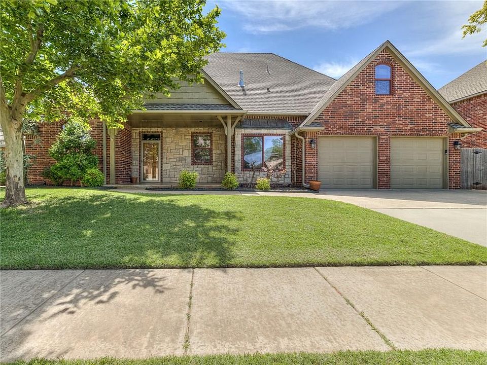 Located in the gated community of Lone Oak Ridge, this beautiful home has been kept in immaculate condition! This open concept home boasts 3 bedrooms plus a bonus room upstairs complete with its own full bath which could serve as a 4th bedroom or game room. The home has a split floor plan with the master suite separate from the secondary bedrooms. The kitchen has granite countertops, stainless steel appliances & refrigerator, ample cabinets, pantry, dedicated dining space, breakfast bar, & a built-in desk. A beautiful dining room off the entry could also serve as a study & has beautiful hardwood floors & glass french doors. Enjoy the extended stamped concrete patio & mature landscaping in the backyard. Garage is a 3 car tandem. Home is close to the neighborhood park & neighborhood backs to Deer Creek Elementary School with sidewalk access direct to the school. The home has convenient access to both the Kilpatrick Turnpike & Hefner Parkway as well as shopping & dining options galore.