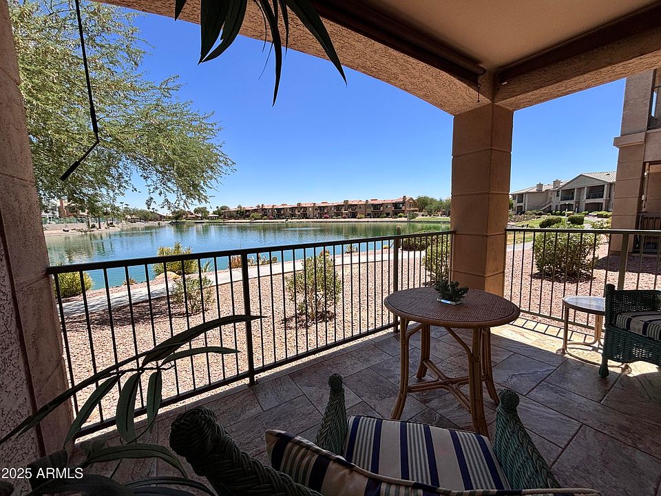Wow, Do not miss this ground - level, perfectly situated condo with beautiful water views now for rent. This 2 bed, 2 bath spilt floor plan condo is light, bright, super clean and shows pride of ownership. The kitchen features granite countertops, black appliances and RO system open to the dining & living areas. Enjoy the serene view from every room. The primary bedroom is spacious with beautiful shutters and water views and a spacious bathroom featuring a walk in tile shower. Ceiling fans in each room, full size washer/dryer provided and 1 assigned covered parking space. Extend your living space outdoors on the patio which has ample shade throughout the day to enjoy the breath taking view.