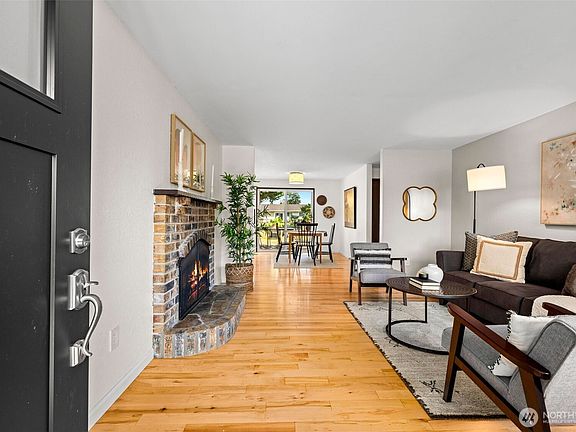Welcome to your darling Gregory Heights retreat, where comfort meets charm! This move-in-ready rambler is the perfect place to live, relax, and play. Gather in the cozy living room with the gas fireplace, or cook up something special in the beautifully updated kitchen with Bosch appliances. The dining space opens to a sunny deck and HUGE yard—perfect for BBQs, gardening, or pets. Fresh paint, central A/C, walnut hardwoods, and new carpet add style, while a half bath, oversized garage, alley access, and storage bring ease. Enjoy sunsets and sunrises, life close to vibrant downtown Burien, and Three Tree Point water access. Steps to Gregory Heights Elementary, parks, and local favorites, this sweet home is ready to inspire your next chapter!