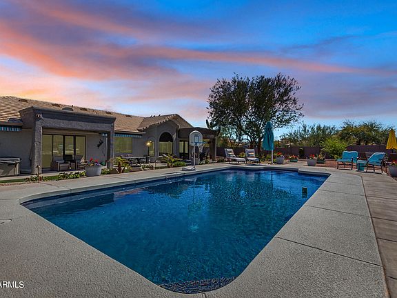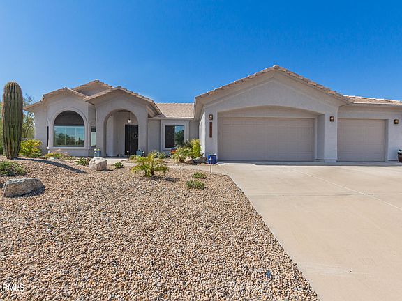 Looking for a home with a casita in the NorthEast Valley? Look no further than this updated home on over an acre corner lot! Spectacular mountain and sunset views from backyard! Primary home consists of 3 bedrooms, 2 baths. Open and inviting ''circular'' floorplan with soaring ceilings and custom fireplace. Updated kitchen with oversized island, granite countertops, and stainless steel appliances. Beautiful views from large master bedroom complete with remodeled bath and walk-in closet with shelving. Casita has two additional bedrooms (one with a murphy bed for easy space conversion,) a kitchenette, and laundry hookups. Inviting patio off casita great for grilling with built in sink and counter space. New exterior landscape lighting adds ambiance to your outdoor retreat. Owners invested over $25k to add new landscaping to compliment the easy-care turf. New PVC watering system with auto timers installed in front and backyards and hard-wired retractable awnings in back. Too many additional features to list: brand new water heater (9/24,) plantation shutters, electric wireless roll-up blinds at sliding doors, smart home nest thermostat and ring doorbell, RV gate, 4 car garage, with storage room and attic, water softener, fully fenced backyard, newer pool equipment. No steps, wheelchair friendly doors and hallway. Prior owner installed new dual pane windows and doors, added sunscreens, remodeled baths, recoated roof, and updated AC, air handler, and ductwork. Seller offers loan programs to make this home more affordable for you! Inquire within.