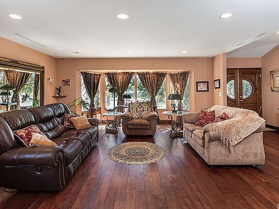 GREAT LOCATION! This STUNNING Granada Hills pool home boasts almost 2400 sq ft of custom living space, featuring dual central air system, heat system, a dedicated laundry room, dual master bedrooms, custom stone pave driveway, 2-car attached garage and more. The double door entry opens to a generously sized living room offering gleaming hardwood flooring, base molding, recessed lights, and gorgeous lead glass bay windows and semi-formal dining room views. Remodeled kitchen showcases granite counter tops set against tumbled stone tile back splash, wood cabinetry with ample storage options, center island / table, walk-in pantry, and built-in stainless steel appliances that include a Viking stove. The Master suite features a private sitting room that offers a granite wall fireplace, plush carpeting, a custom double door entry that leads to a grand bedroom with dual luxury bathrooms with spa tub, dual showers, vanity, dual closets, and private rear yard access. The second master bedroom offers a long wall closet, plush wall to wall carpeting, a private bathroom. The rear yard features a covered patio area, large pool, mature fruit bearing trees and low maintenance California friendly hardscaping.