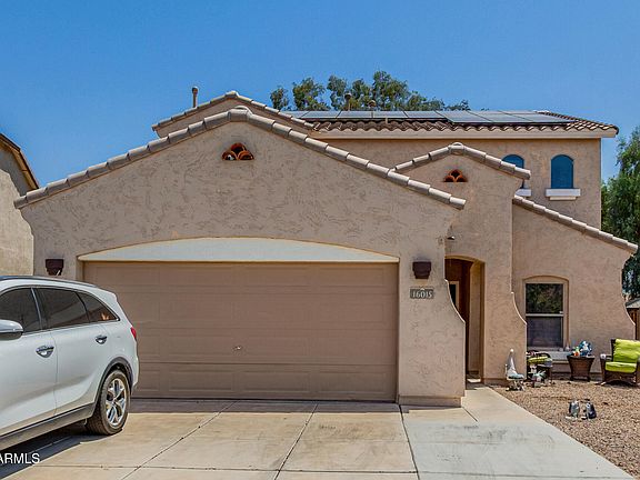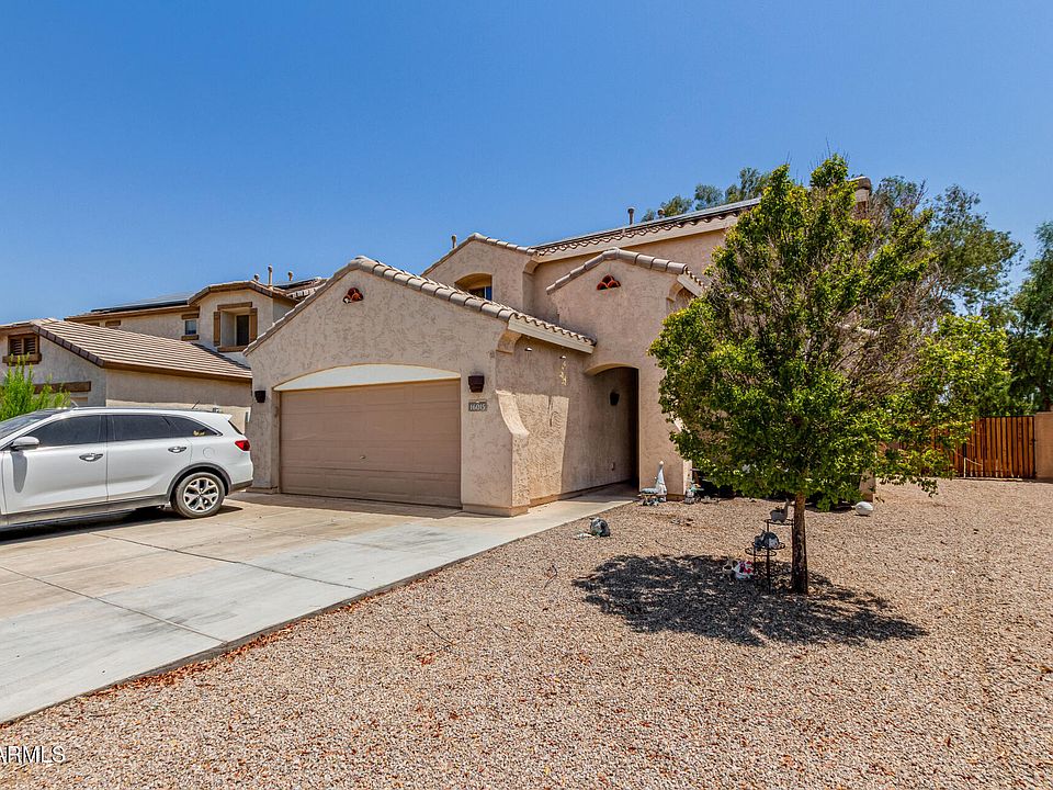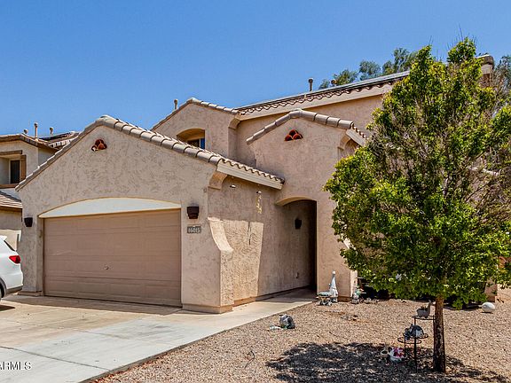 This large, contemporary 4 bedroom, 2.5 bathroom is located in a quiet neighborhood in the Surprise Farms Community. The house features a living and dining area with an open concept and the perfect amount of space to relax. There is a loft upstairs and bedrooms with individual walk-in closets. The kitchen has tons of cabinet space and a shelved pantry. The pool-sized backyard connects to the Green Belt and would be perfect for family get-togethers! This home is located near the Surprise Farms Community Park and Marketplace at Prasada which features restaurants, grocery stores, and more! It's also just a quick drive to the nearby Arizona Traditions and Great Eagle Golf