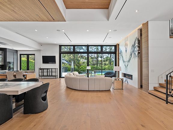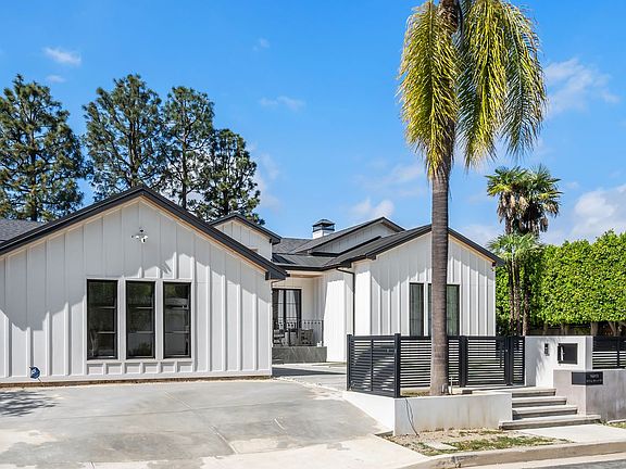 South of Sepulveda and Valley Meadow Remarks : Located in the prestigious Royal Woods neighborhood south of the Boulevard, this elegant two-level farmhouse in the Sherman Oaks hills was **totally rebuilt in 2023** and offers exceptional modern living and entertaining design. Spanning 11,545 sq ft of land, the 4,100 sq ft residence features 5bedrooms, 5.5 baths, and is fully furnished. A circular driveway welcomes you to the home, and a 2-car garage with direct access includes ample cabinetry for storage. Discover multiple indoor and outdoor living areas, highlighted by designer recessed lighting, custom woodwork, stone finishes, and a striking wood-and-iron staircase. The main level includes a stunning primary suite with backyard access, three additional en-suite bedrooms, a formal dining area, an open-concept kitchen, and a living room with wood flooring, built-ins, and large sliding doors seamlessly connecting to the backyard. The chef's kitchen is equipped with top-of-the-line Miele appliances, stone and wood islands, dual sinks and dishwashers, vertical windows, ambient LED lighting, and abundant cabinetry. The spa-inspired primary bath offers dual vanities, a soaking tub, and direct access to the serene outdoor space. Upstairs, enjoy a cozy TV lounge with a fireplace, office space, and balconies with panoramic mountain views. The backyard is an entertainer's dream featuring a heated pool, spa, shower, and built-in BBQ. Additional highlights include tankless water heaters and smart home technology. No detail was overlooked in this thoughtfully designed home. Owner pays for pool man