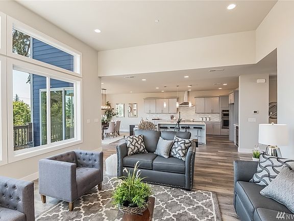 Rare new construction in Gregory Heights! Beautiful views of Mountains and Valley. High quality 5 bedroom, 4 bath home features nine foot ceilings and plenty of natural light. The main floor includes a junior master bedroom. Open concept great room design with dining area and designer kitchen with walk-in pantry. Ideal home management room. Upstairs master suite has a five-piece bath and view deck. Three car garage (one double bay and one single). Plus extra parking. Minutes to downtown Seattle.