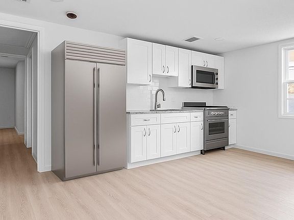 Stainless appliancesSleek countertopsBright white cabinetryOpen layoutGated parkingCozy feel