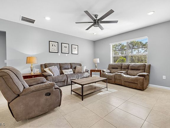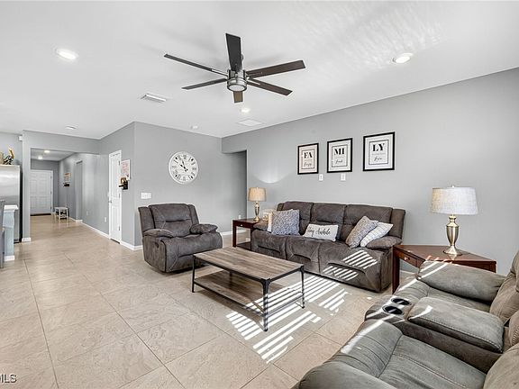 Welcome to this beautifully designed 4-bedroom, 2-bathroom HEATED pool home built in 2022 and located on a quiet cul-de-sac street in North Fort Myers. Enjoy the peace of mind of a no flood zone and very low HOA fees.
