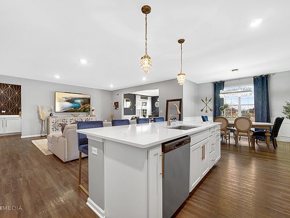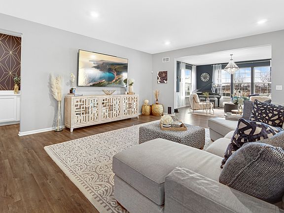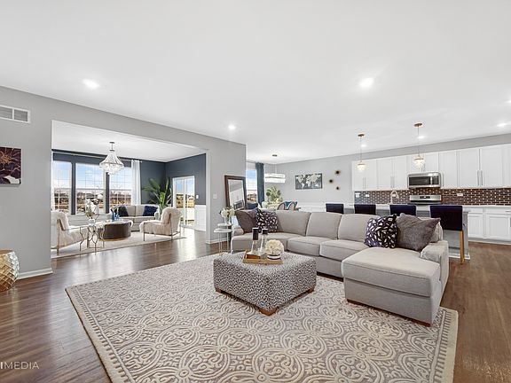 Welcome to Creekside Crossing. This luxury Ridgefield model offers a well designed efficient floor plan that includes three bedrooms, two bathrooms, a first floor convenient laundry room, basement and a three car garage finished with commercial epoxy flooring. Walking through the main entrance/foyer you will immediately be welcomed into the breathtaking single story ranch home that is very elegantly designed w/open floor plan concept. Follow the entry into a stunning family room that overlooks a beautiful lakefront view. Adjacent to the foyer there are two bedrooms and a full bath. The modern and functional kitchen features a breakfast room, Quartz countertops, an over-sized island, a pantry, as well as 42" Aristokraft cabinets and stainless-steel appliances. The dining area is openly situated along the family room providing the ideal layout to enjoy and entertain your guests. Finally, the impressive spa-like master suite is privately tucked away for you to relax. It includes a master bathroom with a shower, a private water closet and double-bowl vanity that leads into an enormous walk-in closet. Some other included features, 9' ft first floor ceilings, Shaw vinyl plank flooring. Plainfield North School district! Close to Downtown Plainfield entertainment and Shopping, transportation and rt 59 corridor. Owner is a licensed Real Estate Broker in Illinois
