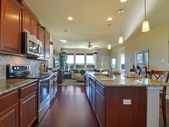 Formal model home. Classic floorpan-3 beds, master down, play room upstairs, SS appliances, designer painting, window treatments, Wood floor downstairs, big backyard, oversized garage. SUPER convenient location-5 min to MOPAC, 3 min to TX45. Walking distance to community amenities (swimming pool and playground).