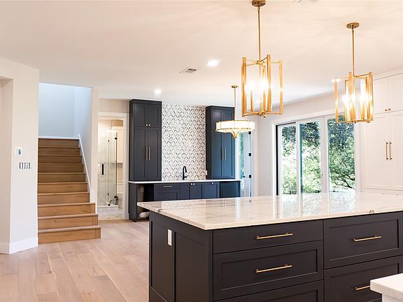 Welcome to this stunning, completely remodeled home in Vineyard Bay! More photos to come... The five-bedroom, five-bathroom residence, renovated in 2025, perfectly blends elegance with functionality. The first floor features three suites, with two additional suites located upstairs. European white oak flooring extends throughout the home, creating a seamless, carpet-free environment. The gourmet kitchen is a chef's dream, offering custom cabinetry, White Lux quartzite countertops, a 48" range, a built-in refrigerator, and a spacious center island. The laundry room is equally well-appointed with an LG SmartStack washer/dryer, an LG refrigerator, and custom cabinetry. The living and dining room combination is highlighted by a full masonry fireplace, soaring ceilings, crystal chandeliers, and Pella Lifestyle windows. The primary suite includes a beautiful fireplace and custom built-in cabinetry, while its luxurious bathroom boasts a 6' freestanding soaking tub, a walk-in shower, dual vanities, and an expansive custom closet. The two secondary bedroom suites on the main floor each feature marble inlay flooring, walk-in showers, and custom cabinetry. Designed for entertaining, the expansive covered patio includes a built-in kitchen with a barbecue pit, sink, and storage. Situated on 0.87 acres, this home offers exclusive access to Vineyard Bay's private marina, pickleball courts, tennis courts, walking trails, a clubhouse, and a resort-style pool. Zoned to the top-rated Lake Travis ISD, this estate truly offers a perfect blend of luxury and an active lifestyle. Don't miss this opportunity to own a move-in-ready, meticulously designed home in one of Austin's most desirable luxury communities!