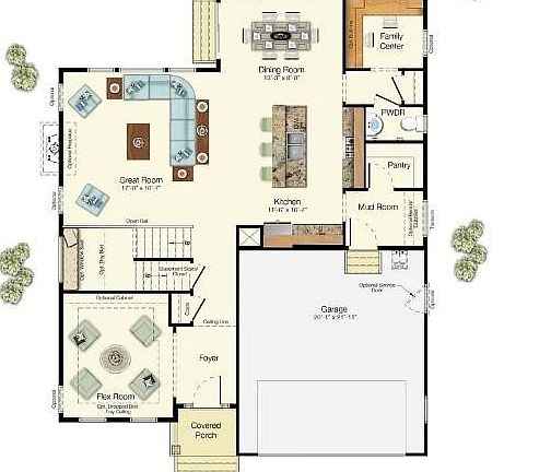 Convenient mudroomIsland seatingUpscale kitchenGenerous walk-in storageDining areaFamily centerVersatile flex room