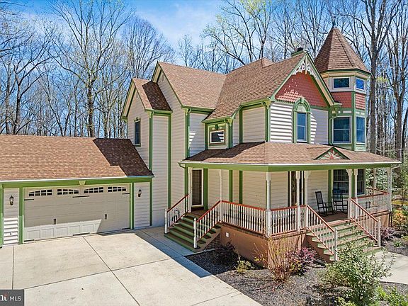PRISTINE 'PAINTED LADY' in the coveted Bowen Estates Neighborhood! This enchanting property exudes timeless charm and elegance. Situated on 3.26 acres of private, wooded land, this property showcases intricate detailing, vibrant colors and elegant architecture. With modern amenities seamlessly integrated, this home offers the best of all worlds. Experience the epitome of luxury living in this one-of-a-kind estate where historic allure meets contemporary comfort. Follow the tree lined drive to this stunning residence, surrounded by beautiful gardens in bloom. An asphalt paved driveway lets out to an extended, concrete paved parking area. The breathtaking exterior is full of life and character & you will be welcomed by two separate staircases, both with extremely wide composite steps to the concrete front porch which wraps around the entire front of the home. There are 3 entrances from the front porch. one leads directly to the dining room, one leads to the hallway off of the family room and the main entrance leads right into the foyer. Enter the incredible foyer with unbelievable wood work & detailed trim. The stairs, railings and hallways are adorned with intricate trim work. To the right is a formal living room with exquisite trim detail, custom hand painted walls, beautiful wood burning fireplace and a bay window bump out with panoramic views of the front garden. Off of the formal living room is the delightful dining room. The dining room windows hold stunning views of the wooded and private property & level side yard. There is an access door off of the dining room that leads to the full wrap-around front porch. Conveniently located off of the family room is the open kitchen. The kitchen is open to the family room and sunroom - with a peninsula that includes bar-height seating. The kitchen also features maple colored cabinets, shining stainless steel appliances and seamless hardwood flooring. Open to the kitchen is the light & airy family room. There is a hallway with direct access to the front porch from the family room. Next to the family room is one of the home's show-stopping features - the sunroom! The sunroom has floor to ceiling windows for an unparalleled panoramic view of the wooded property in all seasons. Every other window opens to let in a soft breeze on a warm spring afternoon. Imagine watching a rainstorm or snowstorm from this area - like a front row seat to nature's theatre. The sunroom lets out to the composite back deck with steps to the private, level & wooded yard. Back inside upstairs, you will find the spacious primary bedroom with spiral staircase leading to an upper level loft/watchtower & private bathroom. The whimsical watchtower is a rare feature & captures the essence of this vibrant Victorian residence. There are 3 large bedrooms upstairs, to include the primary. The secondary bedrooms share a hall bath with vanity & sink as well as a stand up shower with sliding door and a linen closet. Don't miss the lower level of the home, with a large laundry room and space for folding, a partially finished lower level bath room, a work shop, & plenty of space for recreation and storage. Out back and under the deck, there is additional storage for firewood. There is also a shed out back for storage of maintenance supplies and landscaping tools. The property itself is nothing short of magnificent. A variety of greenery and flowers abound - magnolia, lilacs, roses, azaleas, hydrangea, lilies. There is a charming archway leading to the front gardens & wooded trails. This peaceful and tranquil property is the ideal retreat from the chaos of everyday life - like a breath of fresh air, a reset for the soul and for the senses. Do not miss your chance to call 16019 Meandering Drive HOME! Schedule your showing today!
