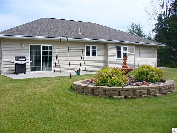 Everything's on one level!!! Newer constructed 3 BR, 2.5 bath ranch style home on great corner lot in newer West Eveleth Addition. Main floor laundry with 1/2 bath, Jacuzzi walk-in tub in the master bedroom bath, DR patio doors lead to the outside patio, fireplace between DR & LR. Two attached garages (one's heated), plus a heated, attached 20x24 workshop. Amenities include in-floor heating with off-peak electric system, central air, professional landscaping including an irrigation/in-ground sprinkler system w/timer, two 200 amp and one 100 amp electric panels; a 16x16 storage shed with overhead door for all outside equipment. This is one of a kind!
