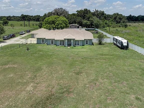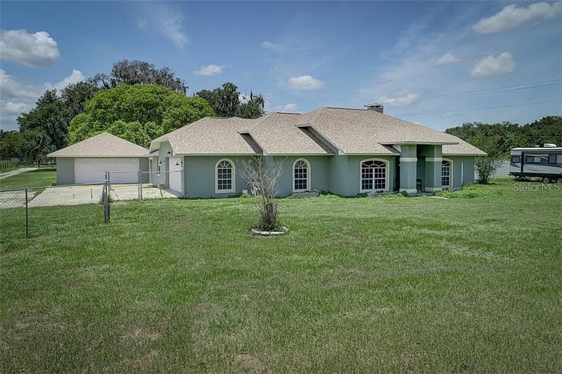 Here you go!! Enjoy your beautiful new pool home set in a beautiful rural setting in Lithia on 1.24 fully fenced acres! This 3bed/2bath/ PLUS an office - spacious open/split floor plan does not disappoint!! Upon entering the front door you'll find the open living room with wood burning fireplace & french doors leading to lanai/pool area, the kitchen boasts granite countertops, plenty of cabinets, pantry & breakfast bar with an open formal dining room adjacent to kitchen for easy serving. Indoor laundry room. NEW ROOF in 2018, NEW AC in 2016, NEW water pump for well in 2020, NEW pool filter, robot & vacuum in 2020!! 2 car attached garage & another free standing 2 car garage!!! There is also a shed behind pool area. Come get your slice of heaven! More pics including master bed & bath pics coming!