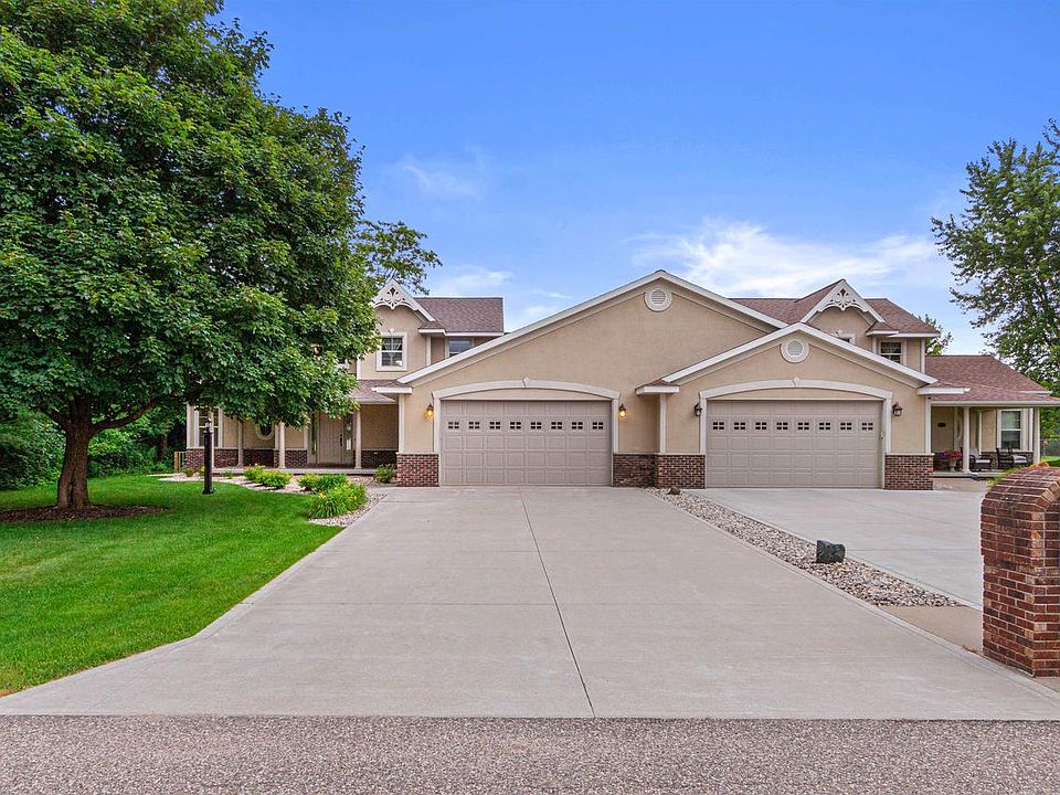 BEAUTIFUL PRIVATE ZERO LOT LINE IN THE PERFECT LOCATION! Incredibly designed & immaculate 3BD/3.5BA 2 story zero lot line with 2 car attached insulated, drywalled & maintenance free garage floor! Custom built by Ability Construction, this home is located in the Village of Plover and sits on a beautiful private landscaped lot. As you pull up to the home you will notice the charming appeal of stucco & brick with concrete driveway and beautiful landscaped path that leads you to your large front wrap around porch which was just finsihed with a beautiful enamel finish which will exceed your expectations. Exceptionally built with every amenity in mind this beautiful home offers over 2800 sq ft of living space with the perfect design! As you enter the home you are welcomed with an impressive foyer which is two stories high, featuring a sprawling wood staircase with an open and airy feel.,This home features a large living room graced with a beautiful accent window and an abundance of natural light, 10ft cathedral ceiling and architecturally designed brick gas fireplace. There is an open concept dining area and expansive chef's kitchen with new high definition counter tops that will be sure to capture you with its high quality hickory cabinetry, eat-in bar, double panty, and all appliances included. Patio doors in the kitchen lead you to your spacious deck overlooking an unbelievably beautiful private backyard paradise with mature trees. On the main floor you will also find a master ensuite with a private bathroom & walk-in closet, laundry room/mud room with washer & dryer & half bath. Upstairs you will find 2 spacious bedrooms, linen closet and a full bath. The finished lower level offers a large family room/theater area as well as a full bath and option for a 4th bedroom/office with egress windows plus tons of storage. Convenient access to the lower level from the garage is ideal to access your storage and living area. New professionally finished no maintenance garage floor adds the prefect finish. The yard is professionally landscaped with an underground sprinkler system on its own well and has an automatic timer. This is the perfect property in the perfect setting! Call today for your private showing! Seller states the following updates: Professionally Painted Maintenance Free Garage Floor & Front Porch completed 2024, Most of roof replaced 2024, Garage updates 2024: Interior walls, ceiling repainted, new epoxy floor, new rubber base, new carpet on step and landing in garage, new overhead door, exterior of garage service door repainted, New driveway in 2021, Brand new pump, control box, and well for sprinkler system 2023, New kitchen countertops with undermount sink & cabinet hardware 2024, New vented microwave in 2024.