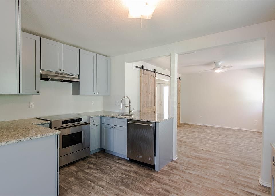 100 percent fin may be available to you! Beautifully updated 3-2-1 with new roof, foundation repair, plumbing and electrical updates. New appliances, fixtures, barn doors, paints, carpets, bath fixtures, cabinets, flooring, exterior paints. Garage is almost a two car size. Close to 35 and Inwood, Texas Women's University, plenty of shopping and restaurants.