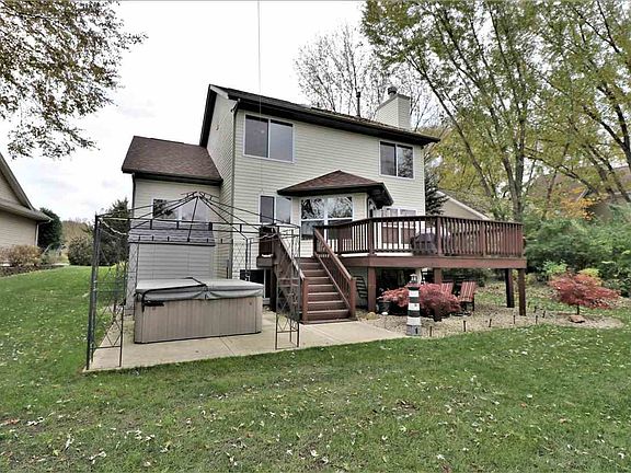 Enjoy boating, fishing, water skiing and tubing on this 200 acre lake located in a gated community. Association includes great events like holiday lighting competition. Rec center equipped with pool, basketball & tennis courts, fitness center and restaurant. There is even a 9 hole golf course!! All this comes with a move in ready 2 story home with great lake views. Kitchen boasts of maple cabinets, granite counter tops, stainless steel appliances. All oak flooring on main floor and new carpeting on second level. Sliders off eating area to enjoy the deck that overlooks the lake and a 6 person hot tub. Extra deck at lake front to step onto pier or sit and enjoy the views. Extra living space in Lower Level with partial exposure and wet bar. 4th bedroom in LL has private bath. New roof in 2017. New water softener with battery backup. water filter system. Extra parking pad, home warranty and easy access to I-90