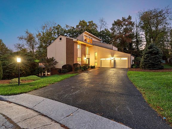 Elegant, architecturally designed, custom-built home that's had just one owner, situated on a cul-de-sac in the highly desirable Rainbow Ridge subdivision. 4 bedrooms (including one on the main level that opens to the deck) and 3 full baths. Vaulted ceiling in LR and sun room. Laundry on the main. Immaculate and beautifully maintained. 2-car attached garage on the main level plus an extra 1-car hobby garage (or workshop) on the basement level. The unfinished walk-out basement has high ceilings, fireplace, and plumbing for a bath, making it ideal for finishing. Massive deck with lovely view to the trees, and a nice patio area beneath. The house has been freshly painted throughout. The high-end furniture in the dining room and sun room convey to buyer who will use it in the home. Fantastic location, within walking distance of South Main Kroger, restaurants, Margaret Beeks School, etc. See Matterport 3D tour.