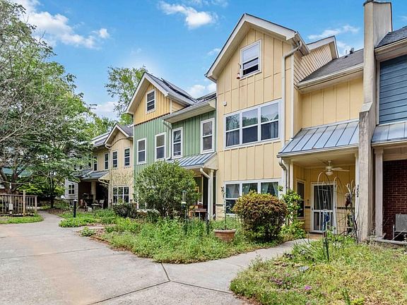 This is more than a townhome community; this is a lifestyle. Set on 22 acres, this co-housing community is a unique opportunity to live in a peaceful lush, landscaped environment! There is a wonderful common house that has a large well-equipped kitchen which is available for members to meet, host gatherings or just relax and read a book. There is a private pond, a lush organic garden, an exercise room, guest suites, a basketball court, a playground, and a large, mowed field which is great for playing soccer or catch. There are nature trails and more. This home has three levels. The main floor has a living room, dining room, well equipped kitchen, a half bath, and a large pantry. There is a patio off the living room, and it has a large closet for your gardening tools etc. The next level has two large bedrooms with gargantuan closets and one bath. There is laundry closet in the hall for side-by-side appliances which remain. The third floor has had a massive renovation (fully permitted) which is a primary suite bedroom, with another spacious closet and the second full bath. There is a small kitchenette with various appliances remaining and a second full sized refrigerator. This leads out to a lovely screen porch looking over the quiet community gardens. There is a porch swing where you can relax, sip tea or your beverage of choice and watch the birds. The layout is unique. You park in the parking lots which surround the buildings and do not drive your cars up to your house. There are multiple wagons for unloading groceries etc. and your front door opens onto a wide walking path, so you are not getting headlights in your windows and car noise at night. It gives you the opportunity to meet your neighbors and it really offers a different feeling.