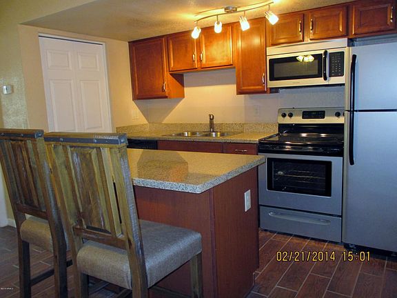 Cute remodeled corner unit with front and back patio, granite countertops, faux wood tile floors throughout, large bedroom and walk in closet, vaulted ceilings, stainless appliances (all included). You will love the space here. Close to The Vig, Richardsons Restaurants, Rokerij, ZTejas, Zipps, Phoenix City Grill, Sprouts and much much more. Gated community.
