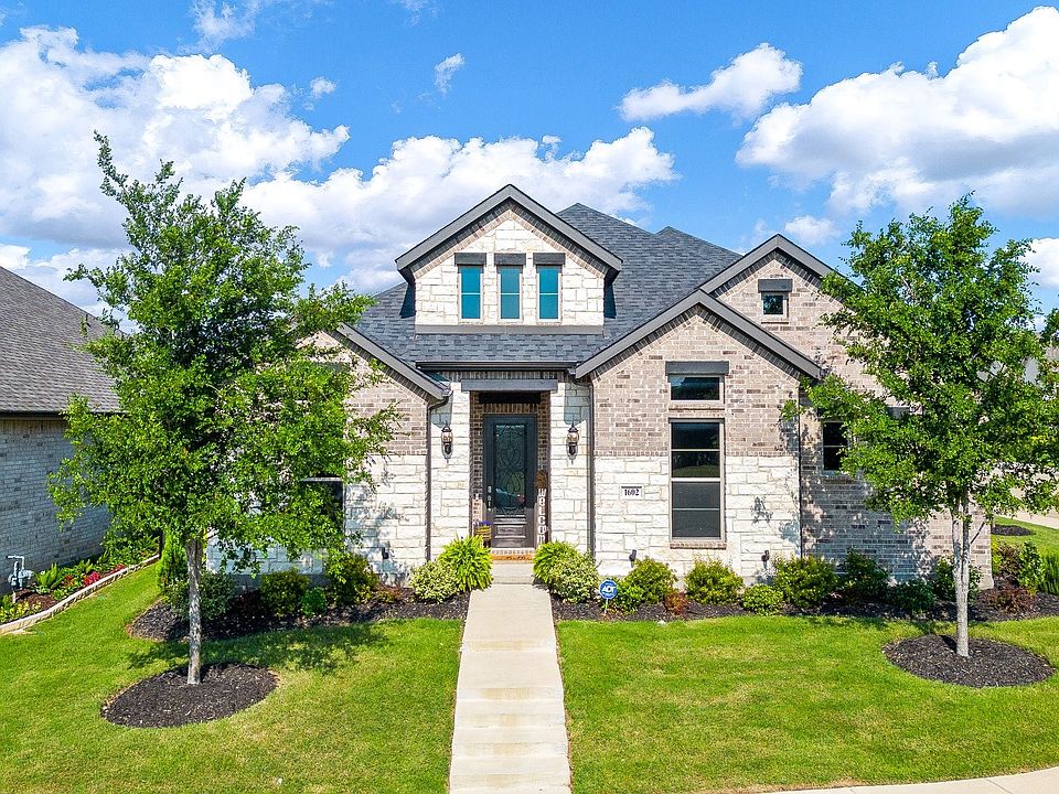 this stunning Wickliffe Manor home has been recently upgraded with exceptional finishes & centrally located close to highways for easy commute to Dallas or FtWorth. Modern floor plan features kitchen with huge island for entertaining, large pantry for storage and tons of cabinet space. Open dining space has been upgraded with beautiful light fixtures.Living room with corner fireplace leads to manicured back yard with large covered patio. 2 spacious bedrooms downstairs and large gameroom, bedroom and full bath upstairs. You will love the serene space of the master bathroom which features separate vanities, soaking tub spacious shower. The oversized walk in closet leads to laundry room for ease. home has been exceptionally maintained and further appointed with decorative light fixtures and paint accents that add to the design. Community features pool, clubhouse and walking trails, a must see!