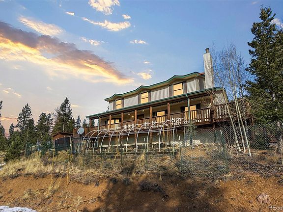 Don’t miss this delightful 8-acre horse property in the coveted Deer Creek Valley Ranchos neighborhood! This south-facing property is equipped with a sizable, owned, $80k solar energy system (will convey at closing), gardening area, chicken/goat barn, and the ability to have horses and livestock, giving way to potentially living off-grid and starting that homestead you’ve always dreamt of! Do you have a home-based business or need a warehouse for storage of work trucks, cars, or goods? The enormous 1500 sq. foot detached garage with three bays, electricity, and heat source provides plenty of room to park work trucks, cars, toys, goods, etc. Situated on over 8 acres along a cul de sac, this 4 bedroom/3 bathroom home (with huge unfinished basement) is ready for you to make it all your own. The beautiful covered porch where you can take in the views of Pikes Peak, Windy Peak, Buffalo Peak, and Mount Bailey gives a nod to a farmhouse feel in the mountains. Fenced pasture for horses. New roof with Class IV shingles on house and garage in 2021. New well drilled in 2021. This home could be moved right into or it can be taken to the next level. Imagine turning this into your modern-day dream farmhouse or rustic retreat! This property is about one hour to the heart of Denver, 1.5 hours to DIA, 1.5 hours to Breckenridge, and 14 minutes to Bailey amenities like Loaf 'n' Jug gas station, Dollar General, coffee shops, food trucks, schools, and the Bailey Library! Live, work, AND play at 1602 Hitchrack Road. Recently appraised at $895,000. Property to be sold as-is.