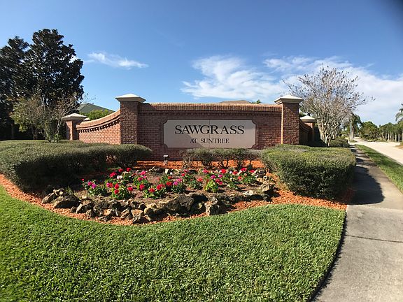 GORGEOUS POOL HOME IN PRESTIGIOUS SAWGRASS AT SUNTREE WITH LAKE VIEWS! CORNER LOT AND NEW ROOF! This 4 bedroom 2 bath home boasts an open floor plan with formal living, dining and family rooms! Spacious kitchen with abundant cabinets and counter seating. Kitchen opens to family room with pool views and sliders to lanai. large master suite with sliding glass doors lead to screened in pool and Jacuzzi! Enjoy lake views from your large lanai and private back yard! Perfect for entertaining any crowd! Newly painted interior and Storm shutters. Close to shopping, restaurants, beach and our ''A'' rated schools. All new furniture available for purchase. Enjoy Florida living at its best and schedule your showing today!