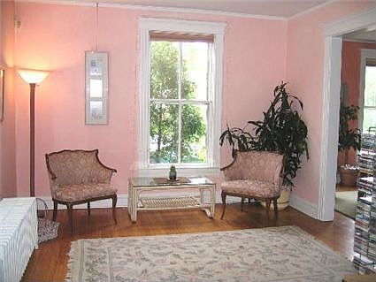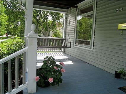 3 delightful stories of 1908 Victorian charm combined with today's conveniences: remodeled kitchen, 2-way fireplace between dining room and den with bar area. 4 bedrooms, 3 full baths, main floor 4th bedroom or office, second floor family room and laundry. Inviting front porch with swing plus huge deck overlooking lovely garden, completely fenced and full of perennials, annuals and vegetables. Office room on third.